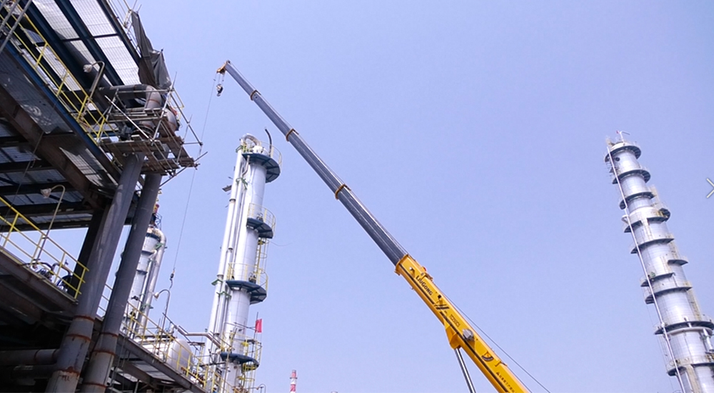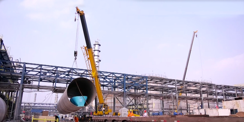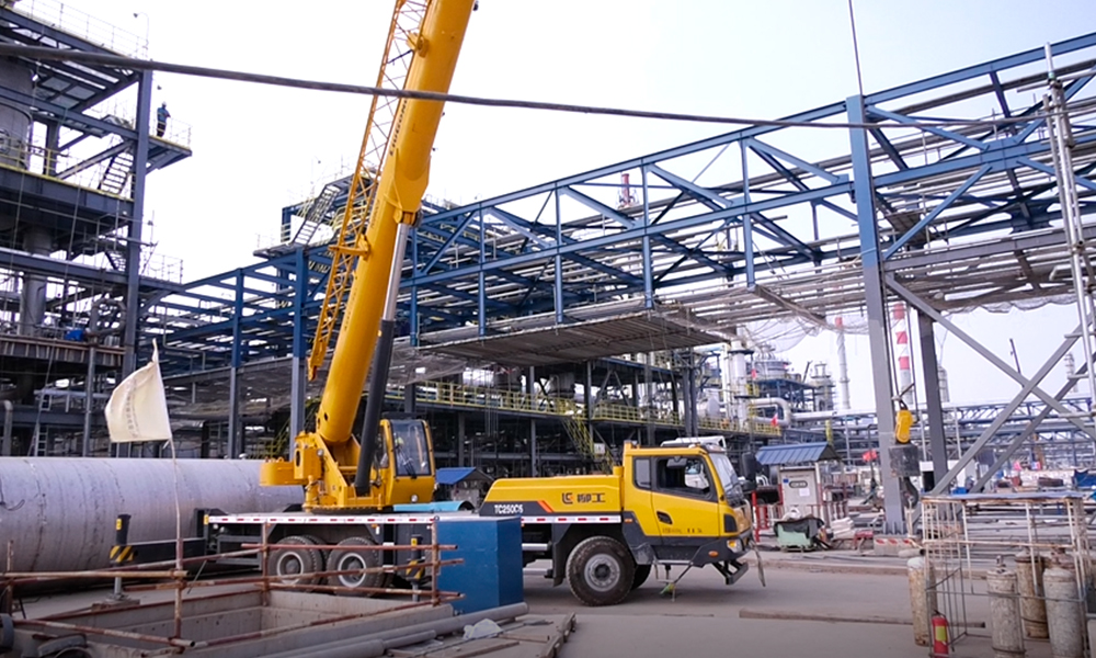初入施工工地,宏大的場面深深震撼到測評人員,腦子里唯一的念頭是:場面如此恢弘的工程,對起重機用戶的資質要求應該相當的高,由此可見,柳工沉淀在起重機核心客戶圈的影響力。值得說明的一點是,由于石化工地管控嚴格,本次測評的不同項目是由多款在該工地施工的柳工TC250C5設備合力完成,也側面反映柳工TC250C5整體性能的穩定性。