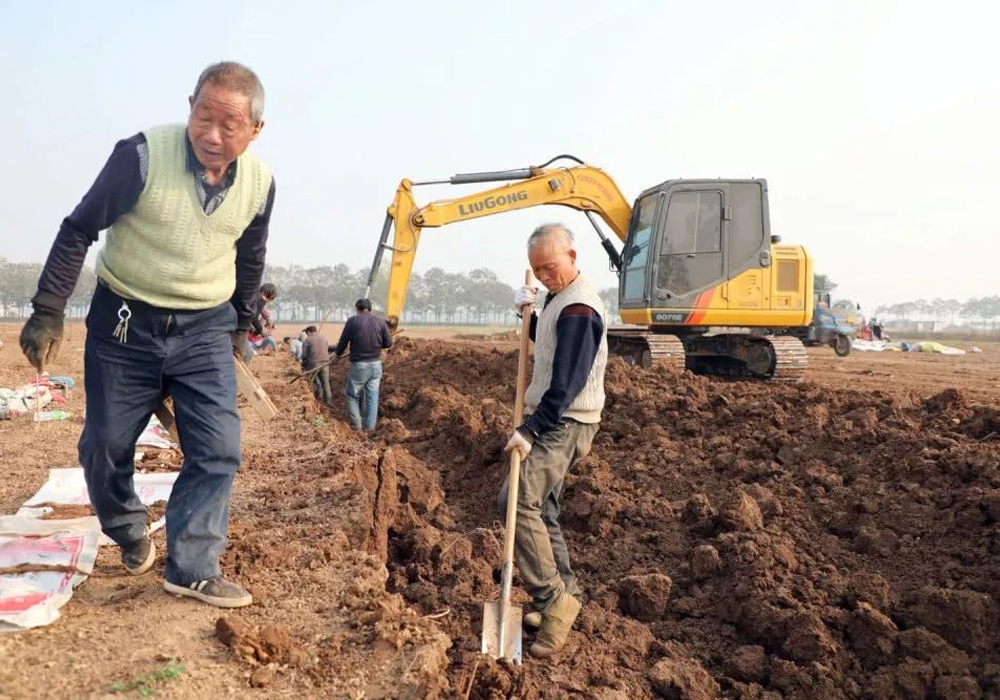 使用挖掘機幫忙挖山藥,這既節約了時間,又保證了山藥的完整性。