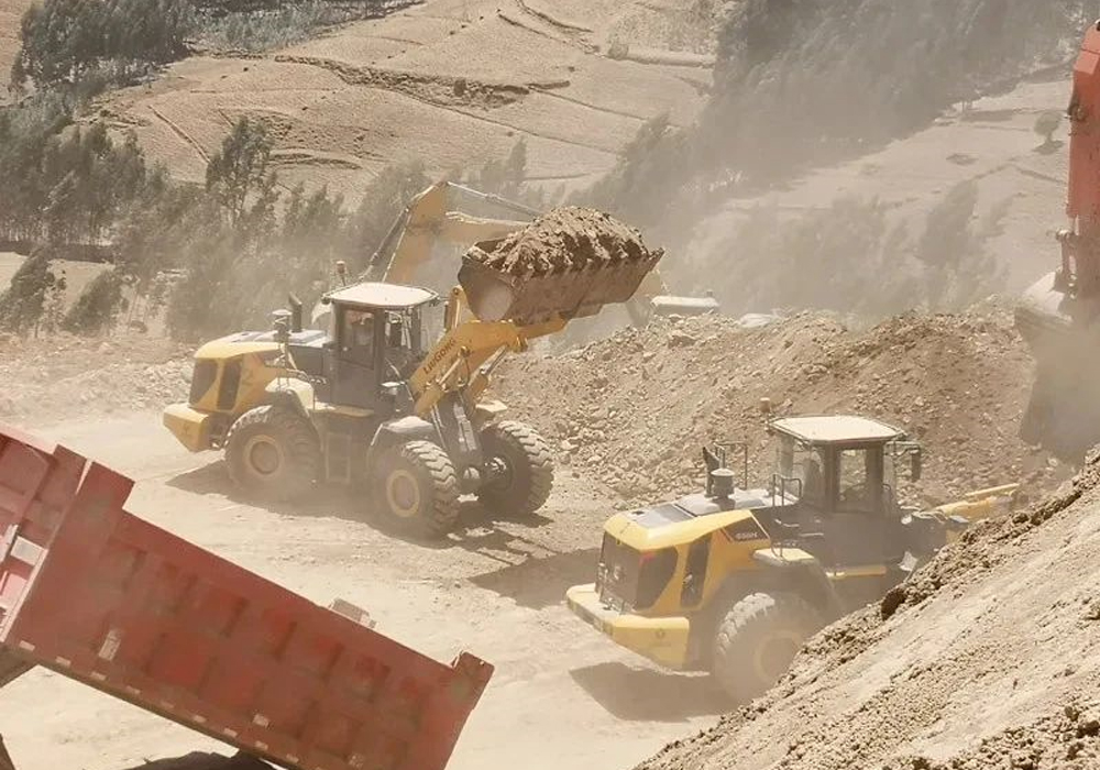 2020年3月26日,柳工7臺856H裝載機順利抵達埃塞俄比亞迪巴克地區的客戶項目部現場,第二天,客戶就要求7臺設備急需快速組裝。