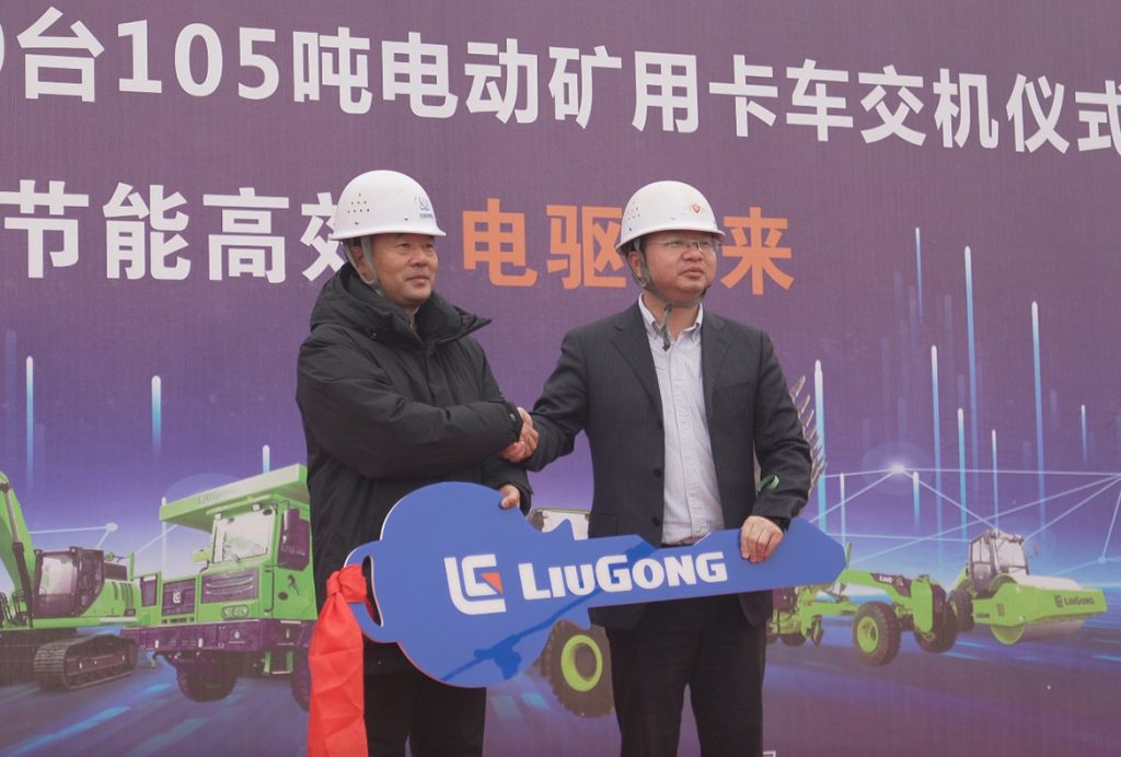 交付儀式上,廣西柳工機械股份有限公司副總裁潘恒亮將金鑰匙鄭重交付客戶,這批柳工電動礦用寬體車將服務于客戶礦山項目物料運輸。