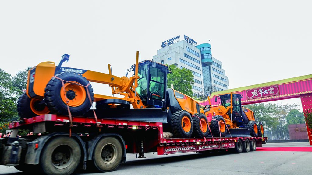 “2024年柳工開門大吉,發車儀式正式開始!”2月15日,運載著各型號裝載機、挖掘機、平地機、叉車等近20臺機械設備的運輸卡車排成一條機械“長龍”,從總部大門出征,發至全國各地,奔赴各類工況。