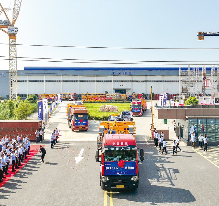 9月9日,柳工江漢廠區內熱鬧非凡,柳工首批250噸米PT7025A-12塔式起重機正式啟程發往海外。