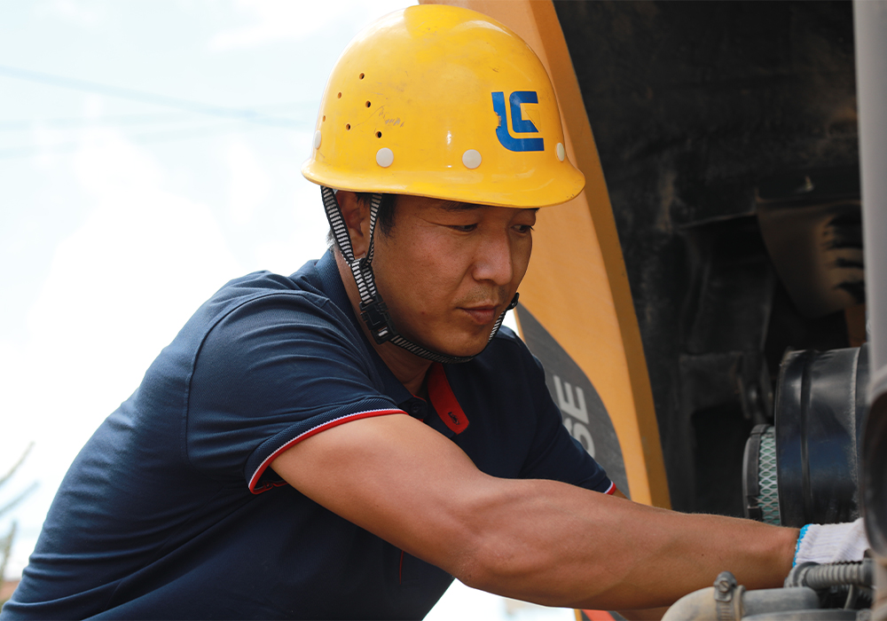 柳工服務(wù)人員在保養(yǎng)設(shè)備